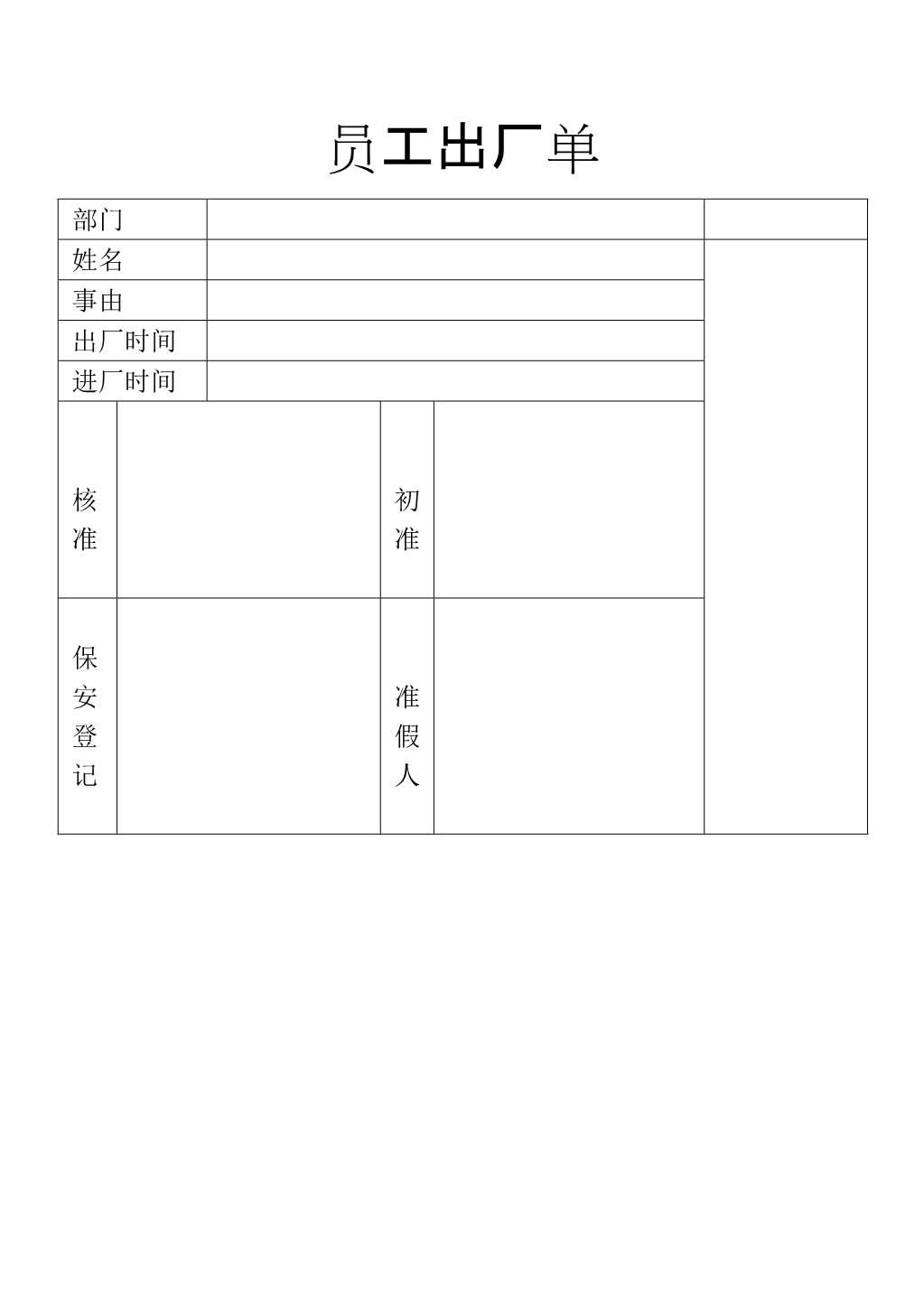 员工出厂单